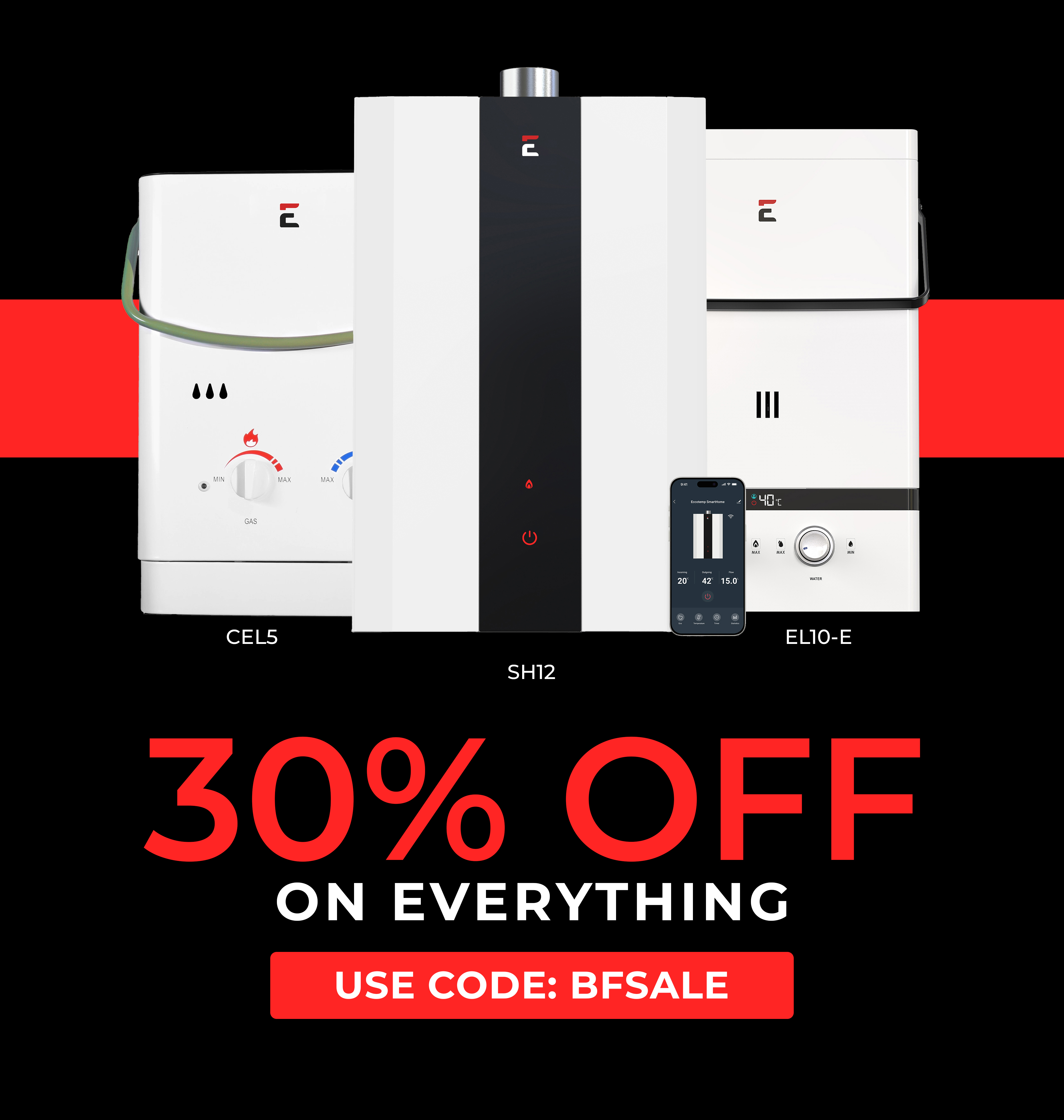 *Get 30% off on all Instantaneous Water Heaters with code BFSALE. Offer excludes venting items. Applies to new EU retail orders only. Must be purchased at https://eu.eccotemp.com/ or by calling 1-866-356-1992. Eccotemp reserves the right to modify or terminate this offer at any time without prior notice. Expires 11/30/2025 at 11:59 PM EST. Due to current shipping delays, estimated dates for back-ordered items are subject to change. No-cost shipping is only available to the following countries: BE, BG, HR, CY, CZ, DK, EE, FI, DE, EL, HU, IE, IT, LV, LT, LU, NL, PO, RO, SK. SI, SE, UK. Same-day shipping is usually available if orders are placed by 2 p.m. Monday–Friday (excluding holidays), however, it may take up to 72 hours. Copyright 2025 Eccotemp Europe. All Rights Reserved.